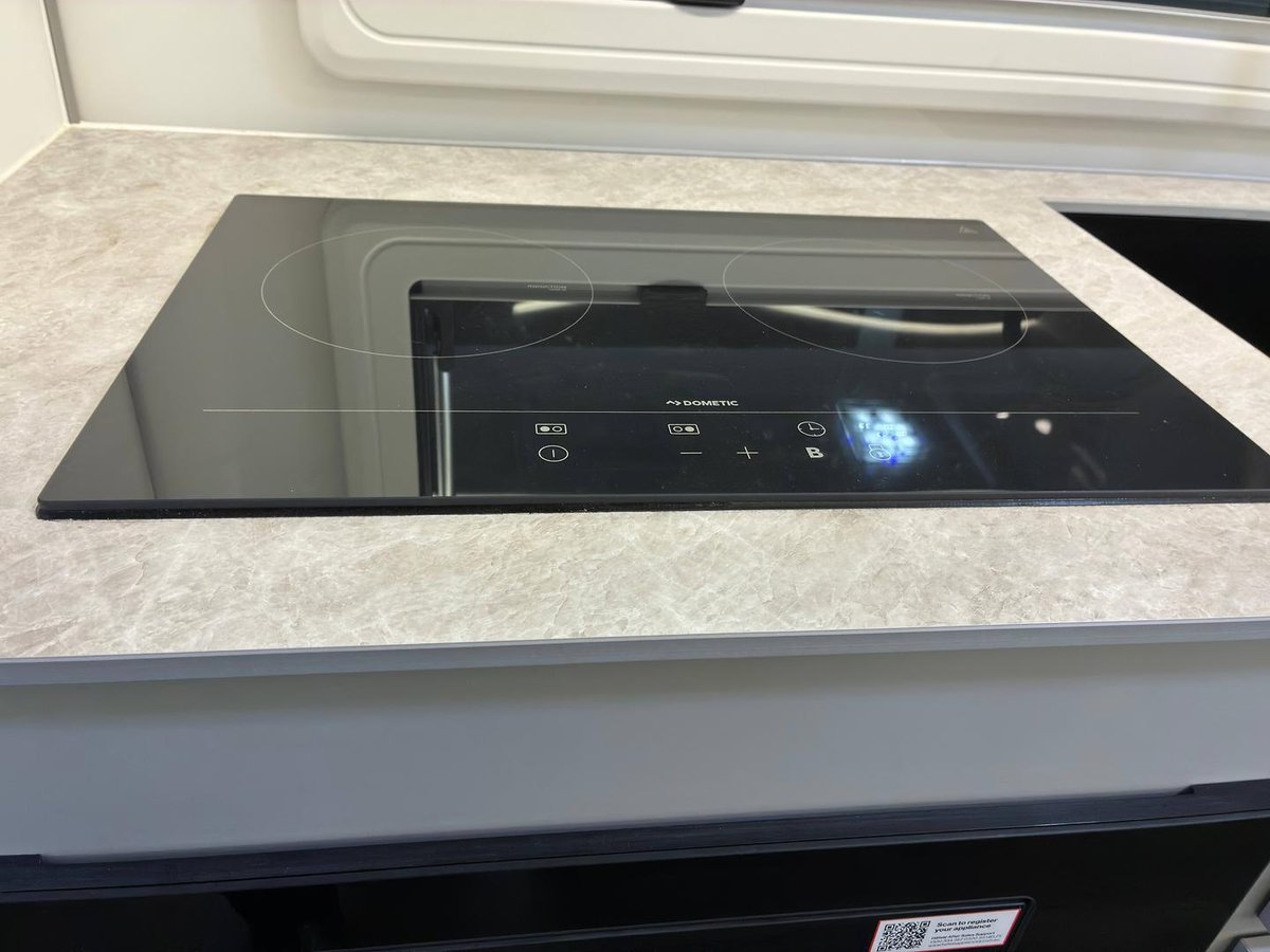 Luxury Laminate benchtops Luxury Diamond Leather upholstery Footrests + JB headrests (cafe models)Innerspring Queen Mattress Slatted bed frame on gas struts Premium vinyl flooring Piano Hinges throughout Cubby hole to front robes Black recessed handles1 piece Honeycomb flooring XP Insulation Mirror insert Black Shower Door Appliances 224L compressor fridge – ventless Dometic Dust reduction systemReverse Cycle Air-con / heating3kg wall mount washing machineFusion MS RA 770 sound system Bluetooth enabled24" Smart TVMilenco Power 900L antennaFull oven2 Burner Induction CooktopTouch control range hoodConvection MicrowaveFire extinguisherSmoke Alarm2 x Sirocco fans External External speakersPicnic tableStucco wallsMidi hatchRoll out awningChecker plate to sidesTriple lock entry doorEuropean double glazed windowsSpare wheel on rearExternal grab handle on entryNudge bars2 x Recovery pointsMarine carpeting to entertainment hatchMarine carpet in tunnel bootSilver Alucomp Roofing2 x Milano toolboxes (with sliders) on A-Frame2 x Rear Jerry can holdersRear woodbox holder Chassis Raptor coated chassis3T ATX airbag suspension, Level 3ALKO – ESC4 inch Chassis6 inch A-Frame + 2" raiser12" Electric brakesCruisemaster DO35 recessed couplingMax Cooper tyres16" anodised rims Plumbing 2 x 95L Water tanks (most models)1 x 95L Grey water tankInstant Electric HWSBlack kitchen sink / black ensuite basin & black tapwareCeramic toilet bowlFlick mixer tapsTap on A-Frame with protection12V water pumpExternal showerPlumbing protection underneath caravan Electrical 10kW EcoFlow Battery Management System 832 amp/hr3,600W inverter (surge 6,000 W)3,000W AC Charge1,000 W DC/DC Charge1,600W Solar Charge Input4 x 200W solar panels* (Model specific)Alloy step with lightDual reverse Camera + monitorLED rail light above sinksCar break away switchEntertainment hatchWork lights at front, rear & offside