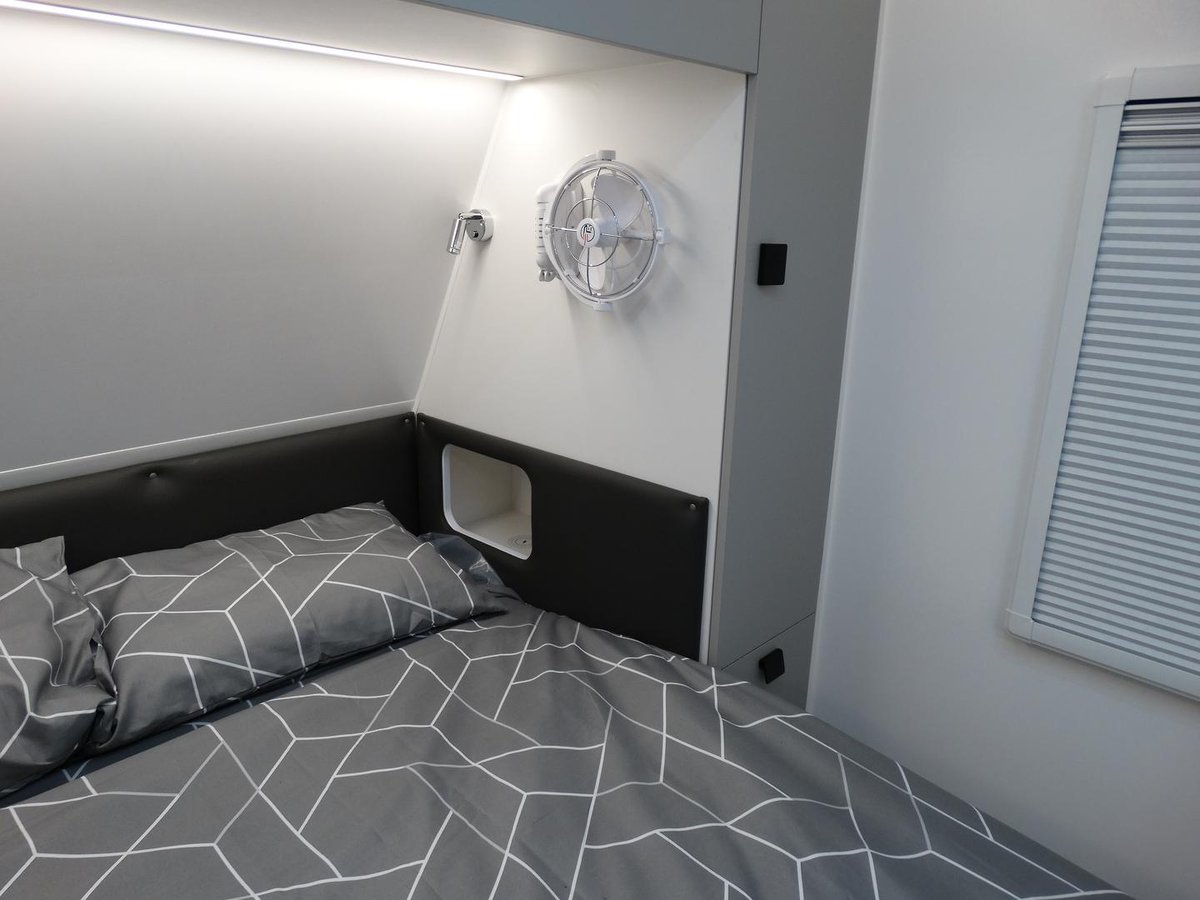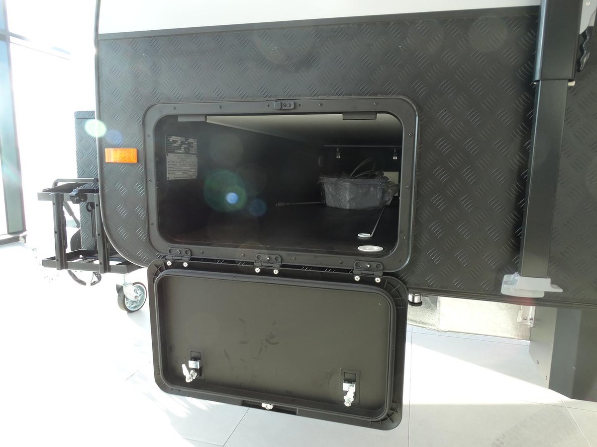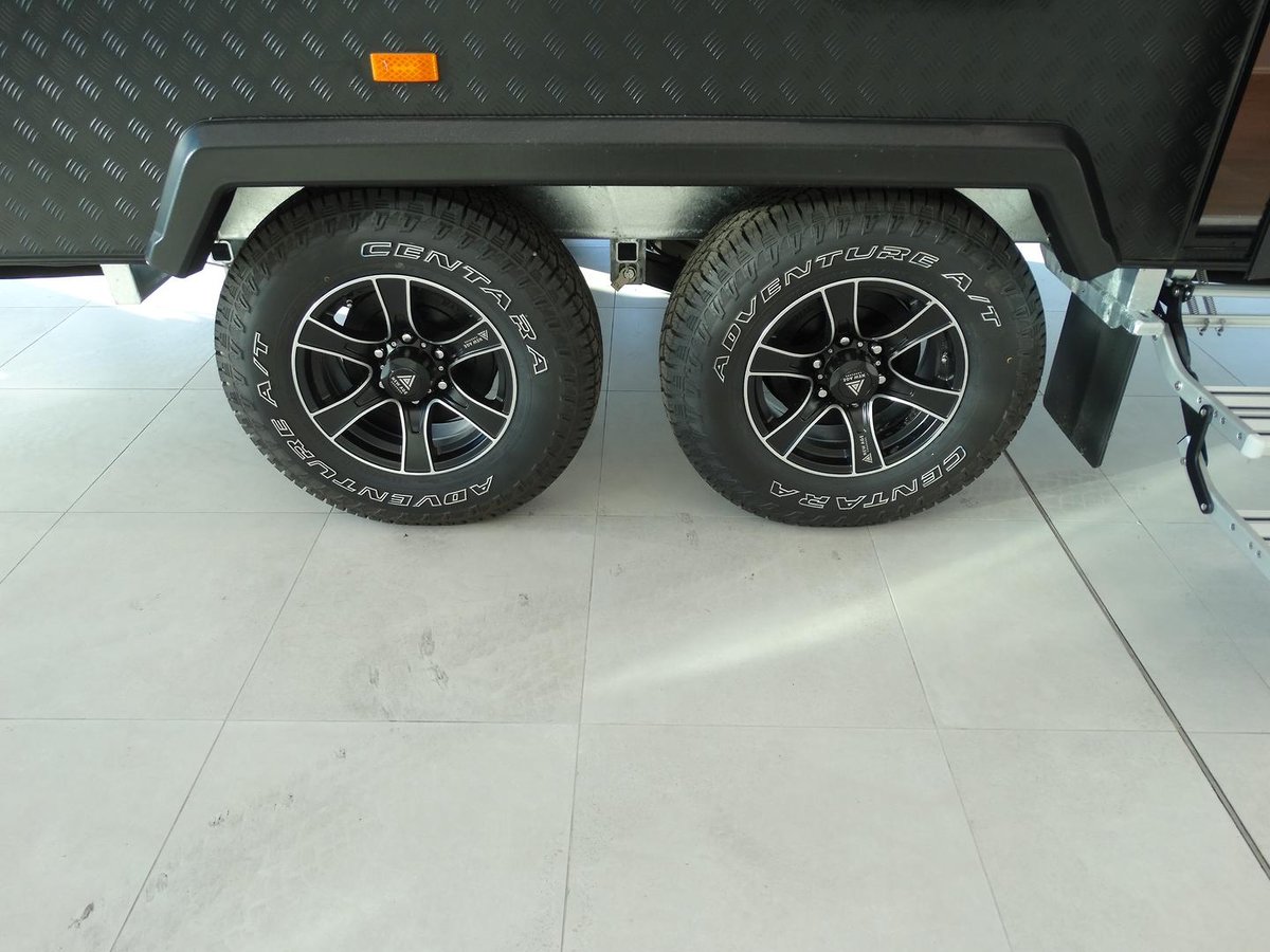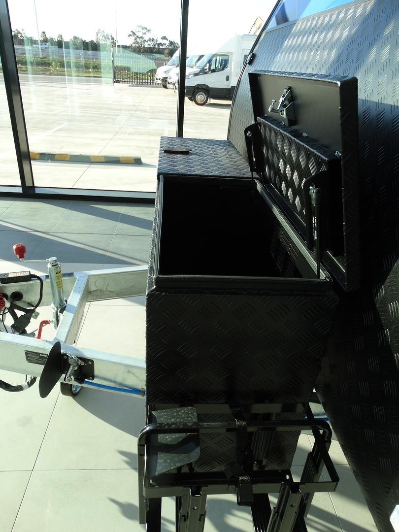 Bosch Tow Assist ? A-frame 6 inch ? Bumper bar black 2 supports ? Chassis main members 6 inch ? Hitch ? DO35 Rotating ? Honeycomb One Piece Waterproof Floor 4 x Stabilizer legs ? Hot Dipped Galvanised chassis ? Mud flaps ? Jockey wheel wide grip clamp ? 12-pin plug c/w Anderson plug ? 2 x 135Ah Lithium batteries ? 2 x 200W solar panel ? Water tank 2 x 110L Fresh + 110L Grey water tank (1x Fresh & 1x Grey on 15 & 16) ? Manual double step ? Gas bottles 2 x 9kg ? Full through tunnel boot ? Gas bayonet & hose ? Dual Bug Annex light Door Side & Roadside ? 1 x Boot light ? Dual 12v/TV socket ? 1 x outlet & 1 x inlet 240v ? Grab handle with night & bug lights ? Cowfish TV antenna ? Awning - Manual roll out ? Flat profile aluminium Windows ? Extendable picnic table with light ? Tig welded Aluminium Frame ? A ? Frame tap ? 2 X Jerry Can holders to toolbox ? Side and front flat textured aluminium protection in black ? Composite Aluminium in various colour options ? Fusion all in one sound panel ? Toolbox with gas bottles one side and storage the other ? Queen innerspring mattress ? Alcove cutouts to bed area with wireless charger, USB port & 240V PowerPoint ? Clever double kitchen drawer with cutlery insert ? Cassette Toilet ? Ceramic ensuite basin ? Recessed cooktop ? Fridge/ freezer 171L Three Way ? HWS (gas/electric) ? Shower with black fittings (Silver optional) ?