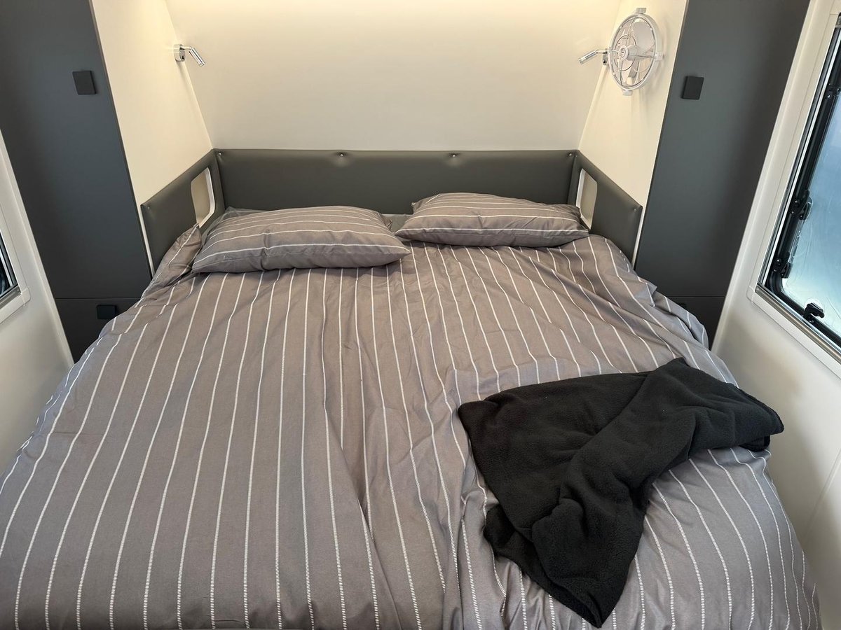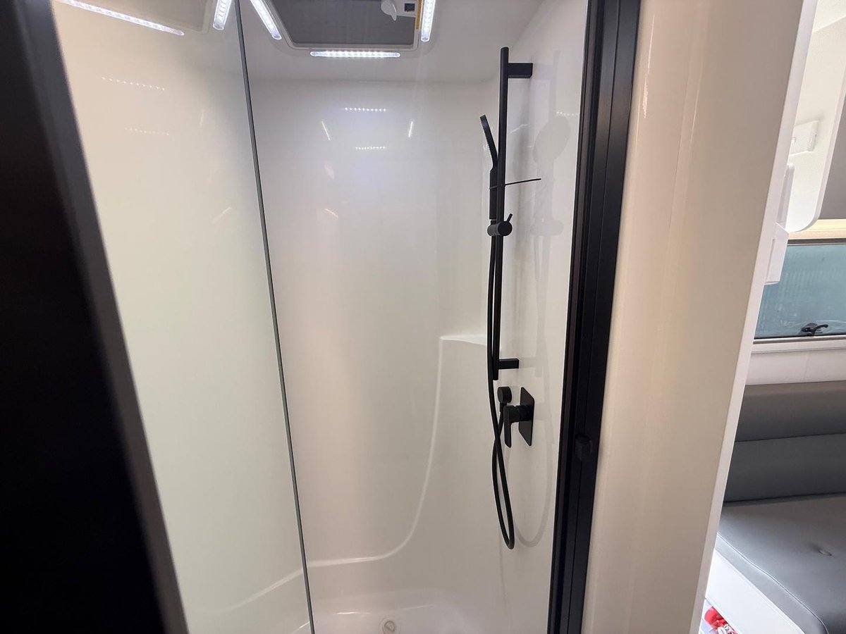Enjoy easy access to the spacious ensuite indoors or out in the Manta Ray 16 ER Expedition with your bedroom and TV quarters privately tucked away in this clever, ultra compact rear-door design.