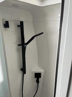 Practical kitchenette plus combination shower and toilet to make weekends self contained and stress free.